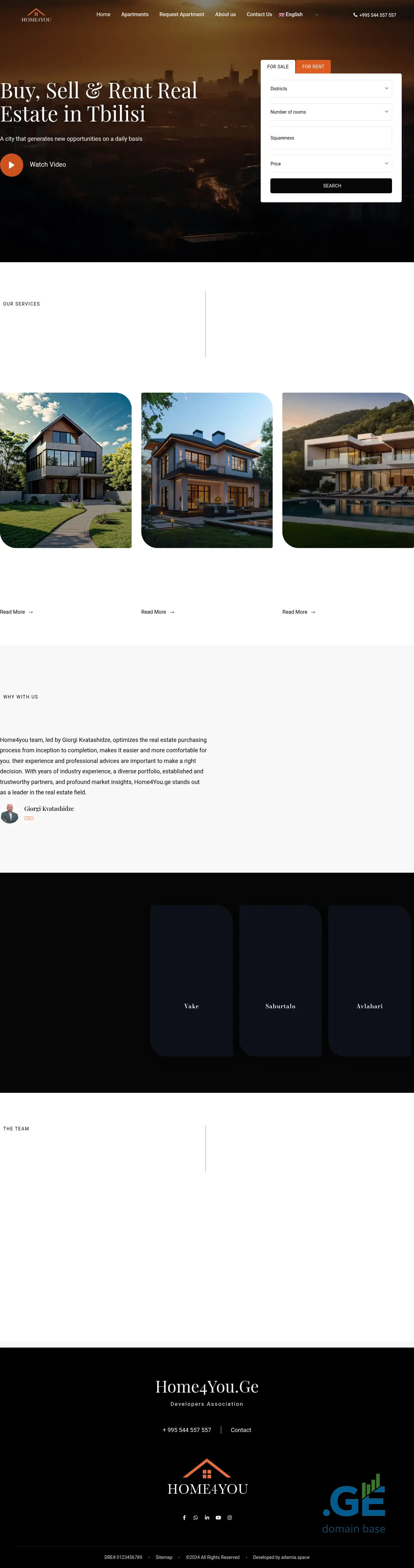 Home4You.ge is a real estate platform specializing in buying, selling, and renting properties in Tbilisi, Georgia, highlighting the city's dynamic opportunities. Established on April 23, 2025, the site emphasizes trust, professionalism, and expert knowledge in its services, featuring a team of dedicated real estate advisors. It provides multiple contact channels, including phone numbers and links to social media platforms like YouTube, Facebook, and LinkedIn. Built on WordPress and secured with HTTPS, Home4You.ge aims to offer a comprehensive and reliable experience for users navigating the Tbilisi property market.